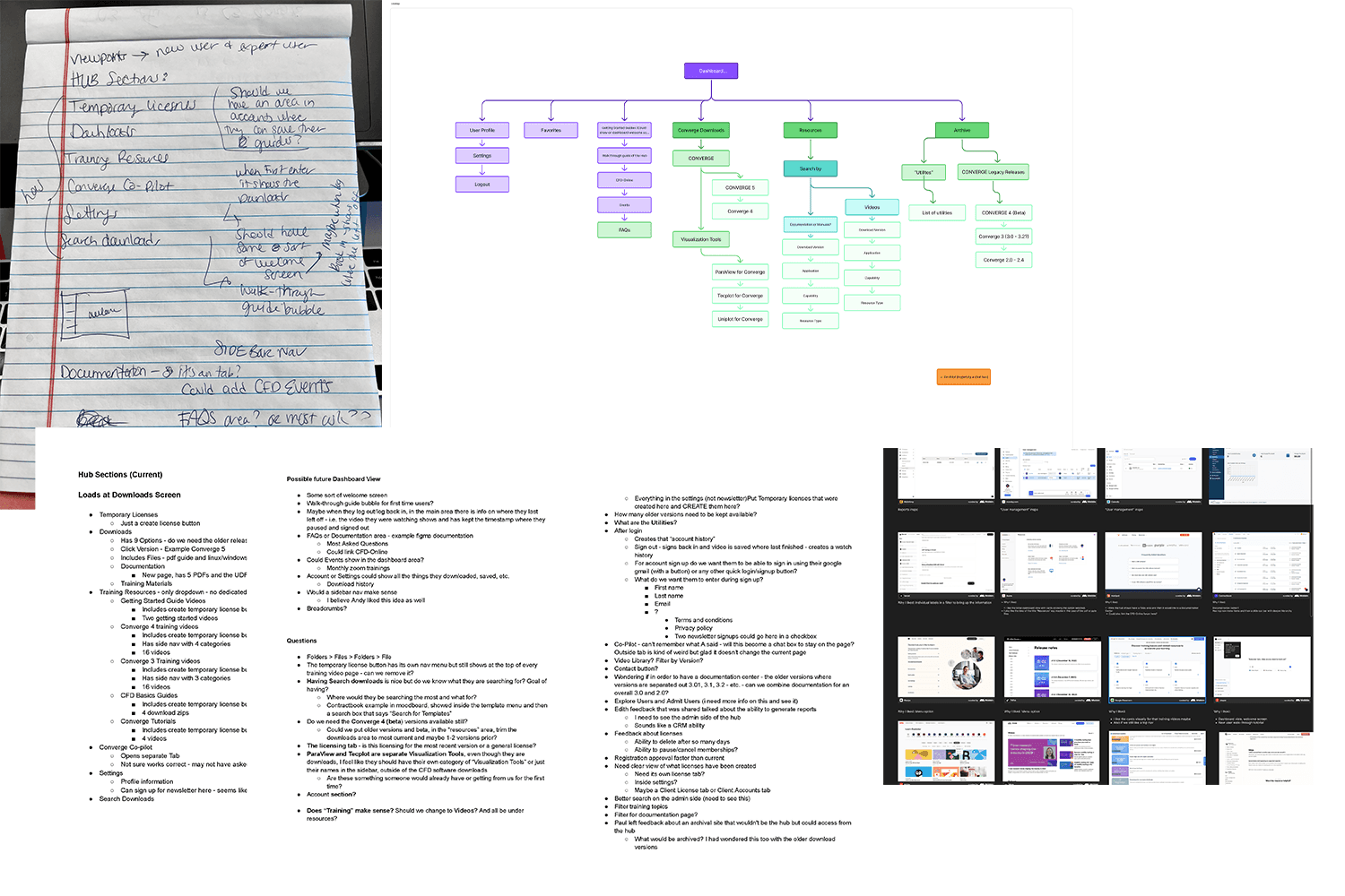The process of redesigning the hub started before my time at Convergent Science. I was provided responses from a user survey sent to internal teams as well as the questions. We also sent out a new user survey for existing customers and got feedback on whats working, what is not working and what is missing in the hub. I was able to interview multiple sales team professionals to provide feedback on their end using the hub, training their clients on the hub and providing support.